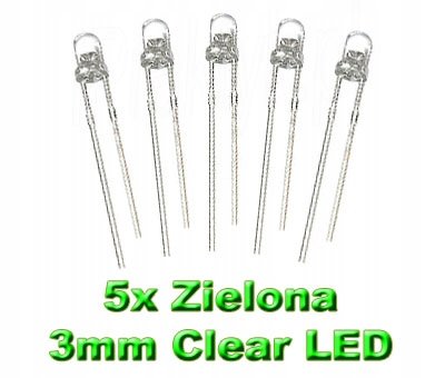 Przedmiotem aukcji jest zestaw 5 szt. zielonych diód 3mm (5 x LED 3mm).
